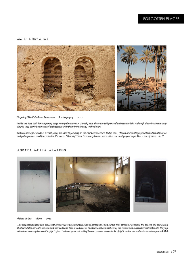 FORGOTTEN PLACES Exhibition Catalog / Photo, Video and Visual Design - International Group Exhibition - Publisher LoosenArt Year 2023. 52 Pages Paper quality 115gr / 250gr