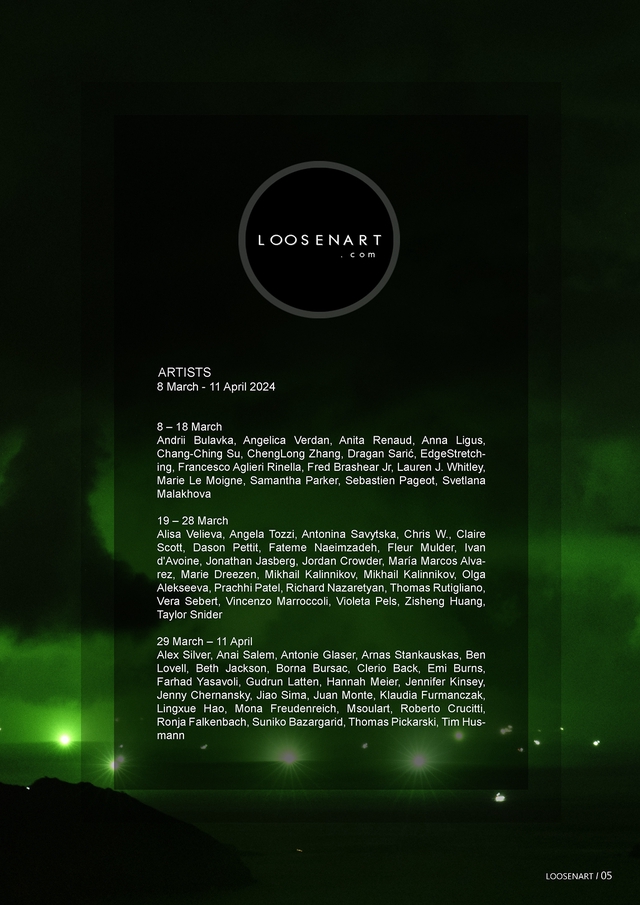 INTO THE NIGHT Exhibition Catalog Photo, Video and Visual Design - International Group Exhibition Publisher LoosenArt Year 2024 52 Pages Paper quality 115gr / 250gr